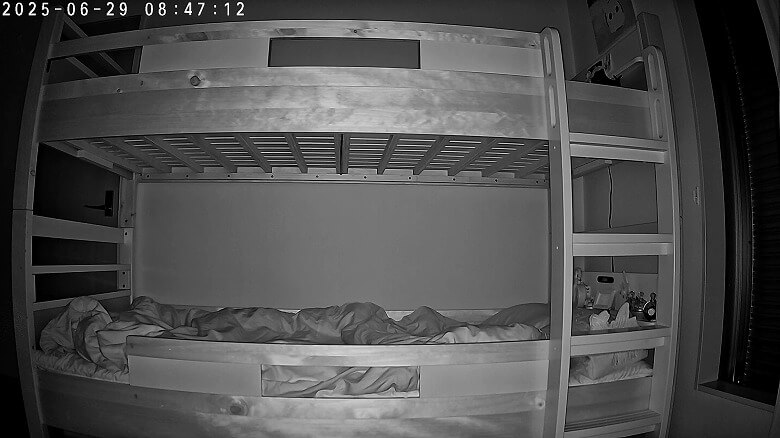 また暗くなると自動で赤外線モードに切り替わるので、暗所でもはっきりと映像を見られます。