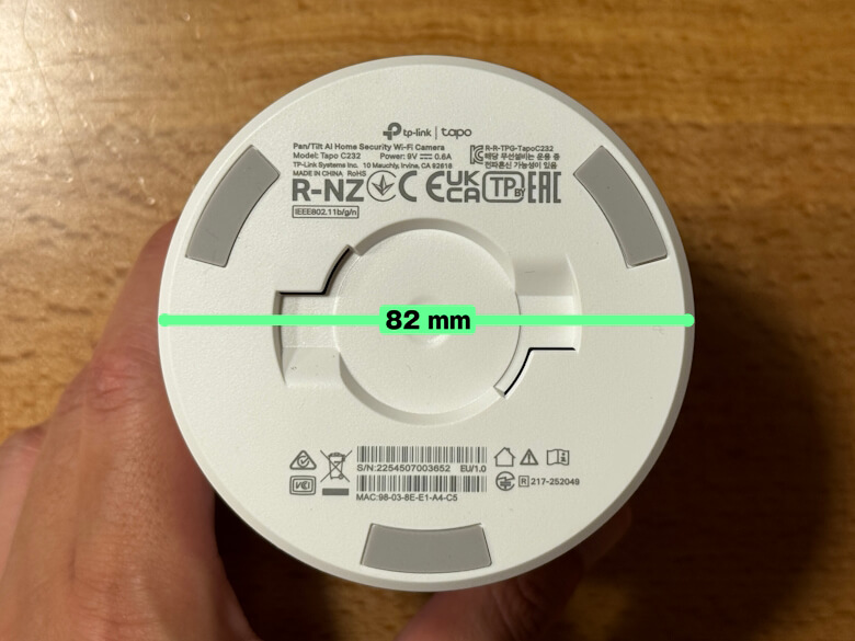 「TP-Link Tapo C232」の直径は82 mmです。