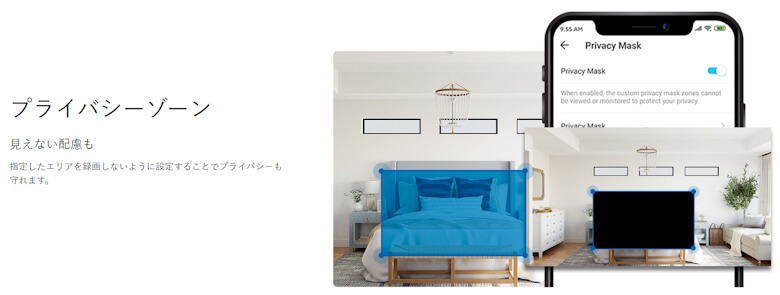 指定したエリアを録画しないように、プライバシーゾーンを設定できます。