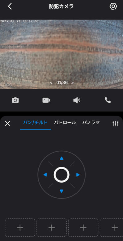 パン・チルトに対応したカメラなので、このように自由自在にグリグリと回ってあたりを見回すことができます。