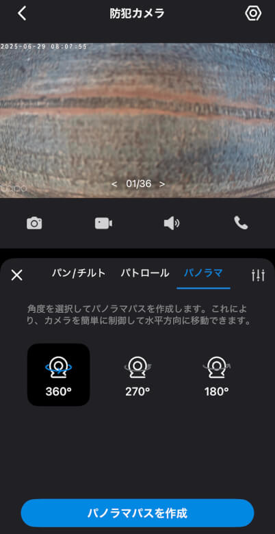 パンチルトの設定や操作、パノラマパスを作成できます。