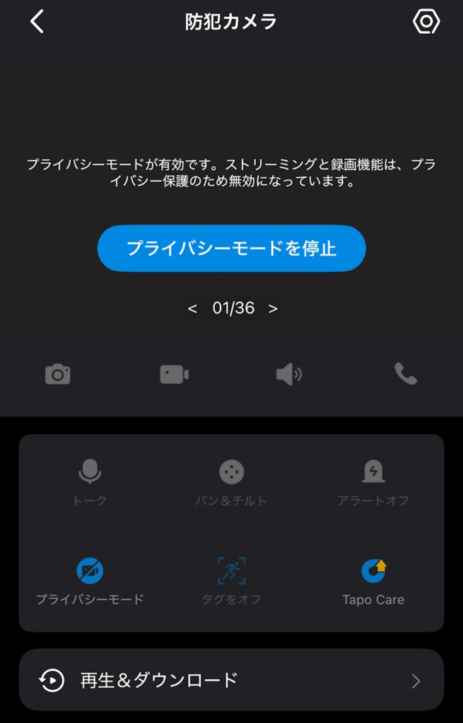 プライバシーモードを有効にすると、ストリーミングと録画機能が無効になります。