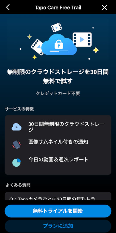 Tapo Careは無制限のクラウドストレージサービスに対応した包括的なサブスクリプションサービスです。