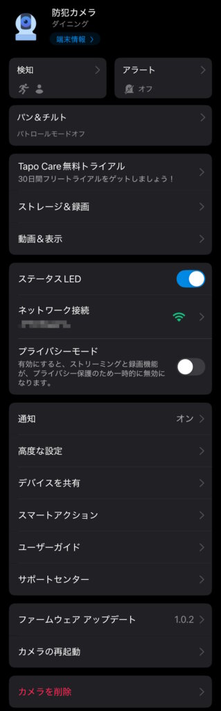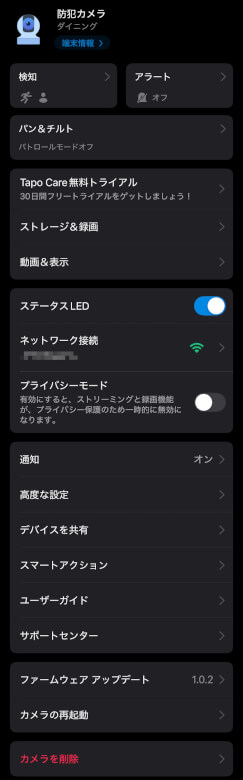 | クラウドストレージ | Tapo Careのクラウドストレージサービス(有償) |