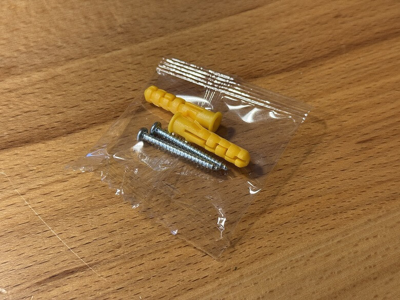 壁などに設置する際は位置決めシールを使って、取り付け用のネジとアンカーで固定します。