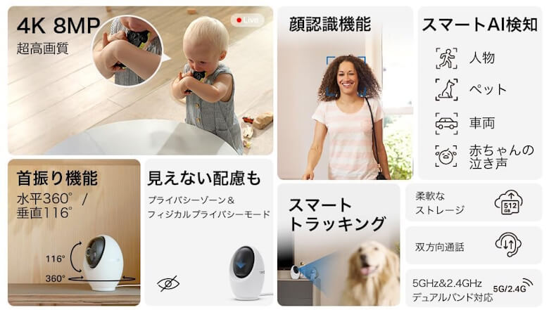 4K高画質、AI追尾、顔認識といった機能がすべて「不安を減らす」という一点にきれいにつながっています。