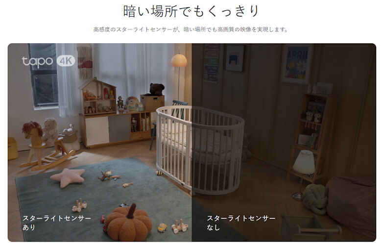 またスターライトセンサーが暗い場所でも高画質の映像を実現します。