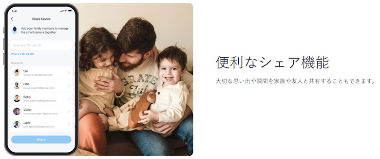 赤ちゃんの様子やペットの行動などの映像を共有できます。