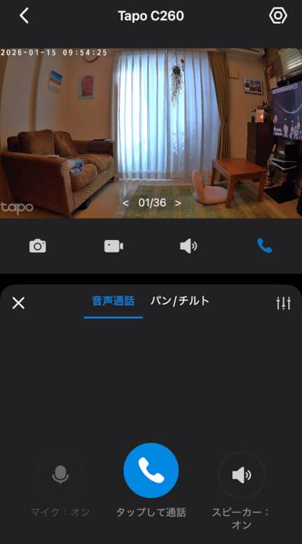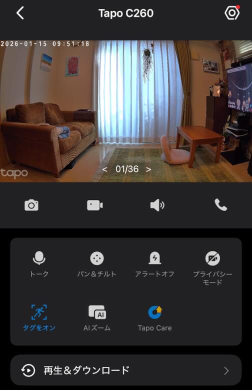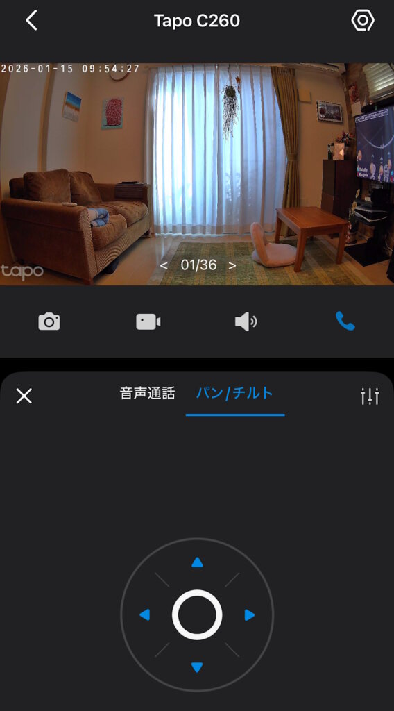 実際に部屋の一部を「TP-Link Tapo C260」で撮影してみました。