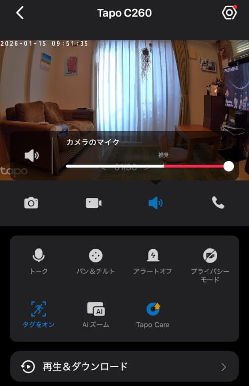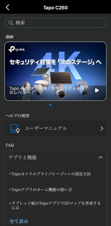 「TP-Link Tapo C260」は専用のスマホアプリ「Tapo」で管理できます。