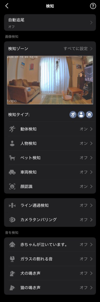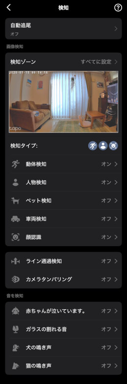 | AI検知 | 顔認識 動体検知 人物検知 車両検知 ペット検知 ライン通過検知 タンパリング検知 赤ちゃんの泣き声検知 猫の鳴き声検知 犬の鳴き声検知 ガラス破損検知 |