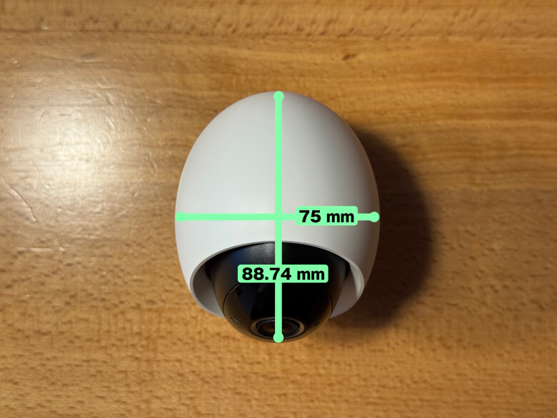 「TP-Link Tapo C260」のサイズは88.74 × 75 mmです。