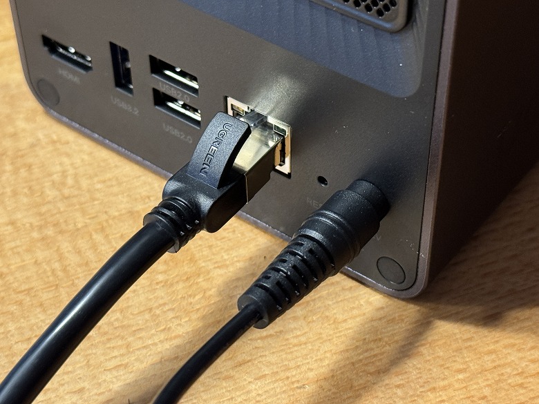 Ethernetケーブルや電源ケーブルを接続するとこんな感じです。