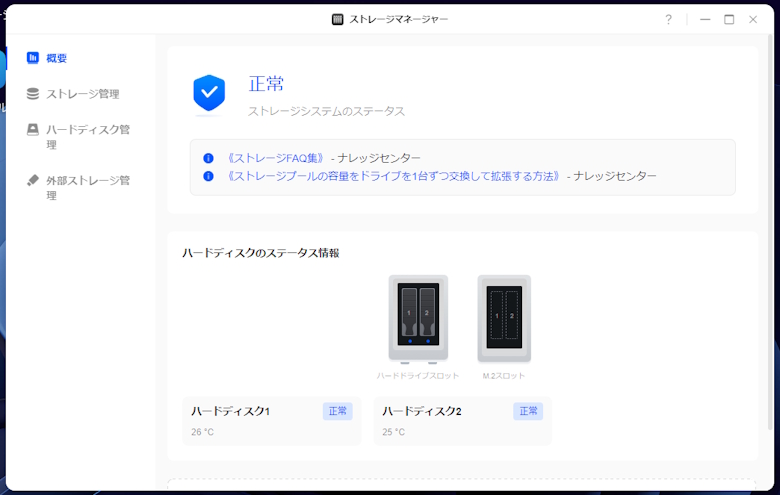 管理画面は直感的で、NASに詳しくなくても迷いにくい構成です。
